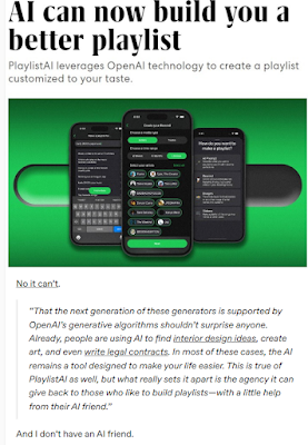 Also, we're told that AI can make a better playlist, and that the bot is "your AI friend". Nazzo fast: